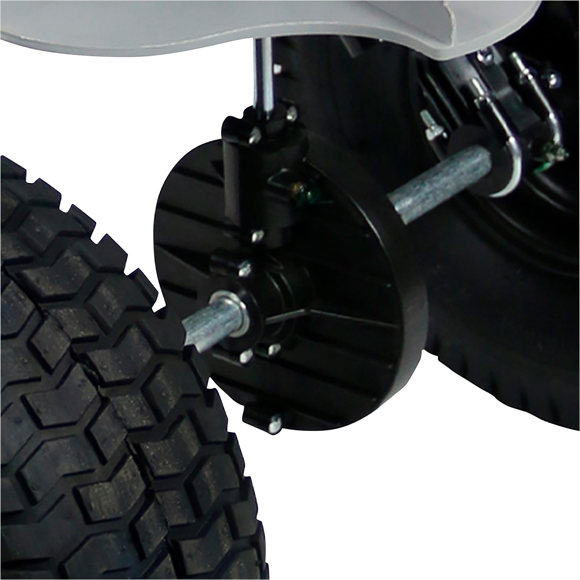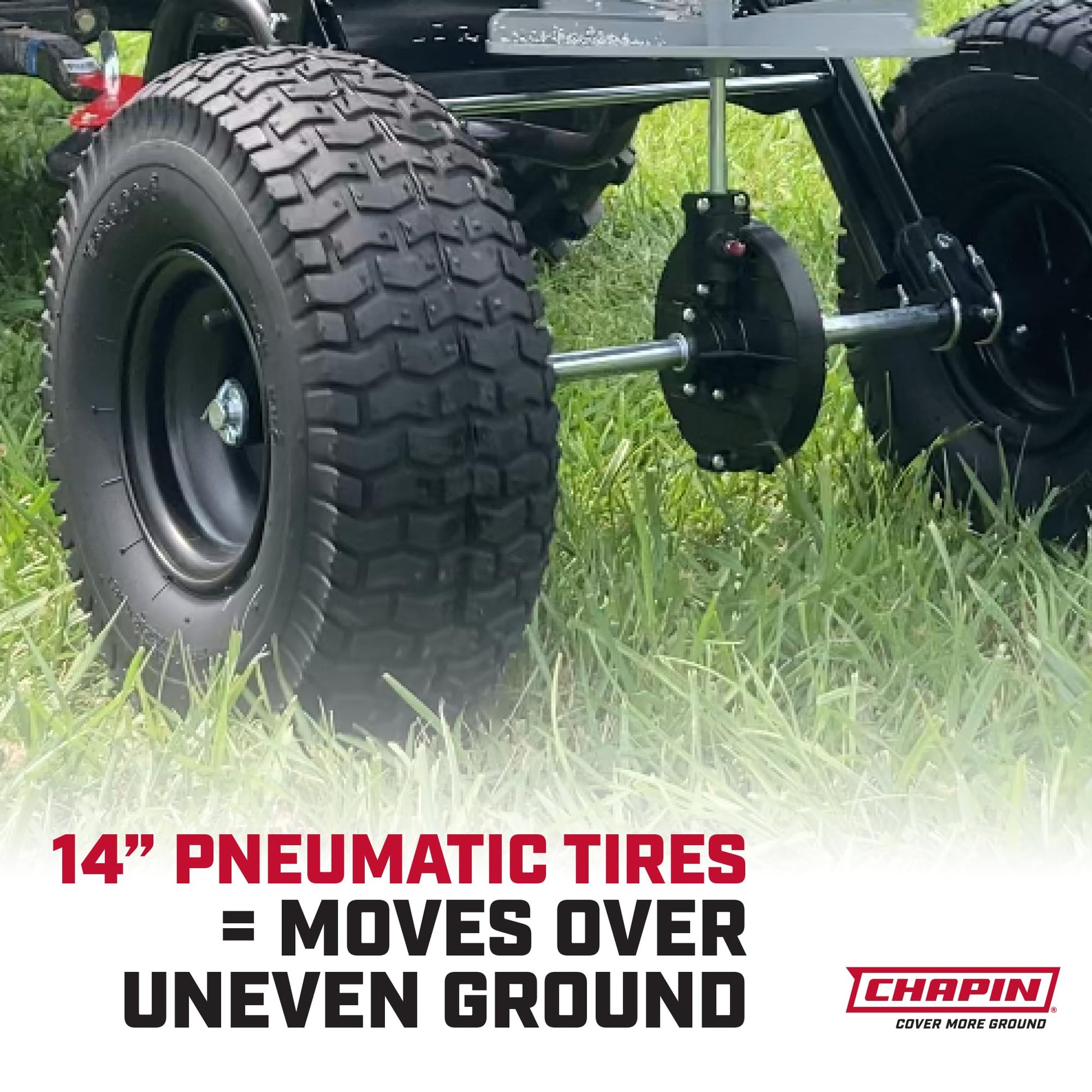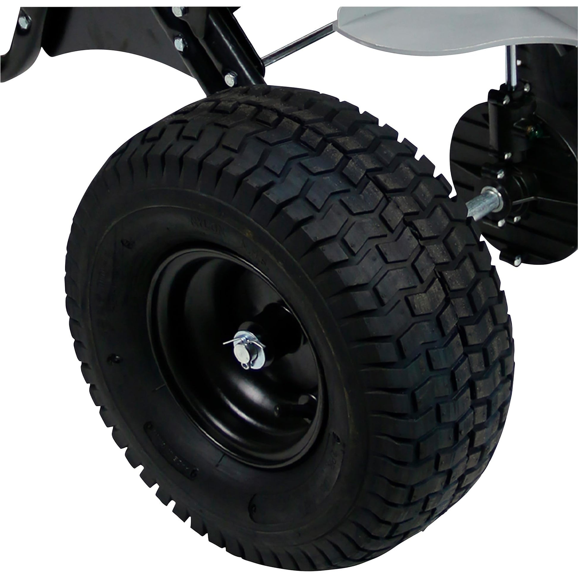 - 14-INCH PNEUMATIC TIRES: designed to handle uneven farm land, acreage and tougher terrain; no need to worry about the hopper tipping while spreading