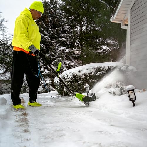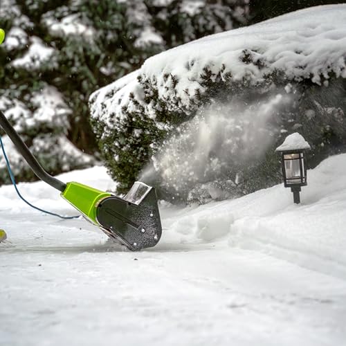 - Powerful electric snow shovel with a 12-amp motor that can move up to 430 lbs of snow in just 1 minute; The power of this snow sweeper is comparable to a gas-powered snow thrower