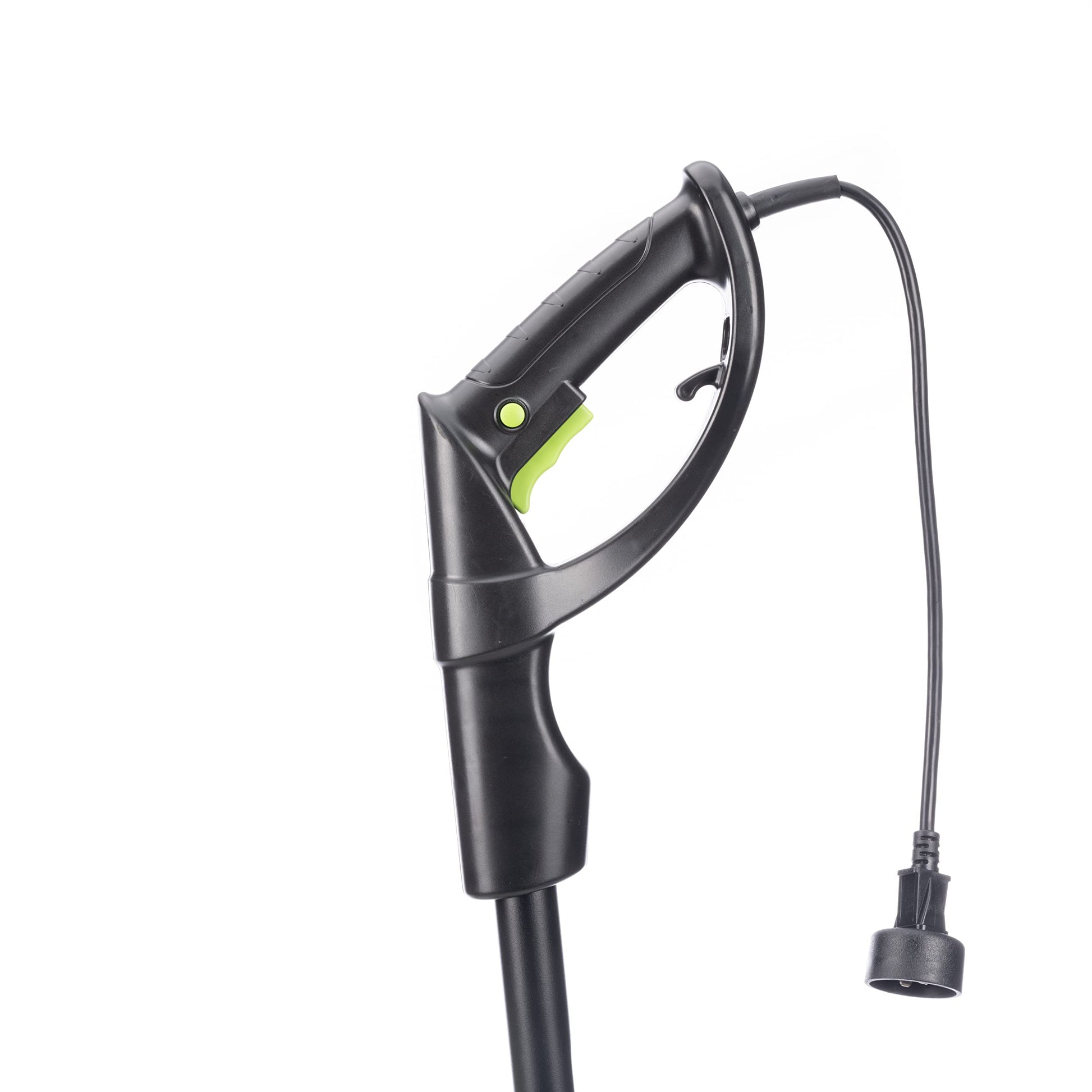 - Corded snow shovel key features; Auxiliary handle, cord retention hook, rear wheels, dual-curved auger blade, and thermal protection