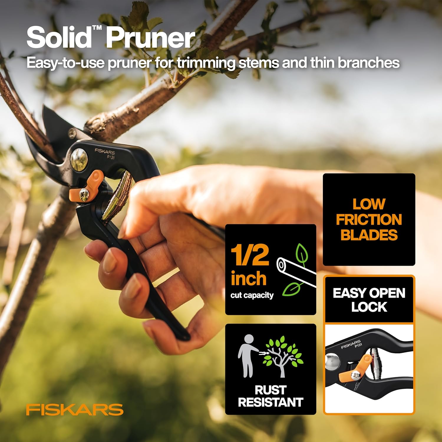 - LONG-LASTING AND RELIABLE: Rugged DuraFrame construction provides superior strength and reduced weight; Steel blades stay sharp through heavy use and provide excellent durability for lasting value; Fiskars pruning shears and tools are built to last