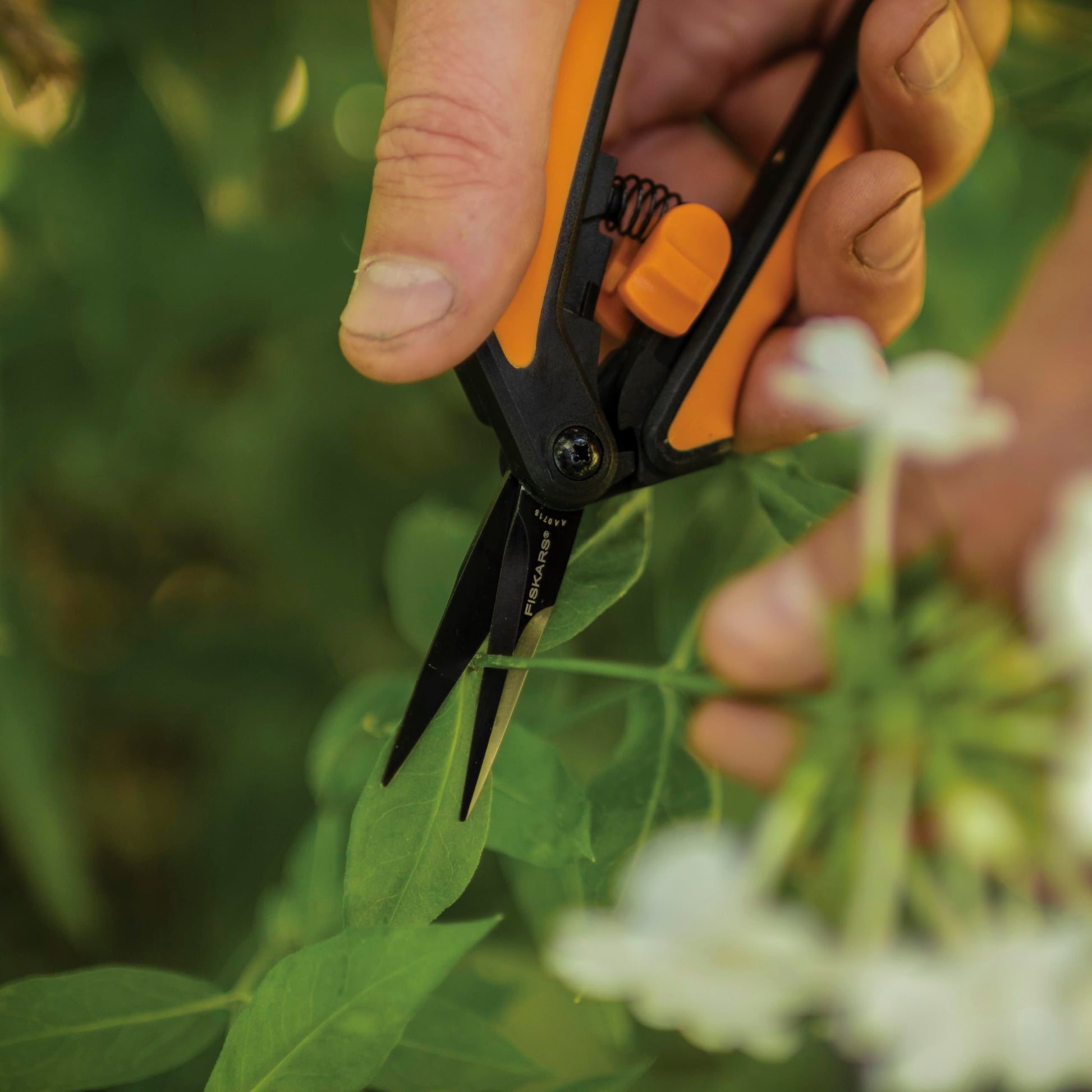 The Fiskars Micro-Tip Pruning Snips with sharp precision-ground steel blades are an ideal addition to your gardening essentials. The precise, micro-tip blades cut all the way to the tip for clean, healthy cuts in tight spaces, while fully hardened, stainless steel blades stay sharp through heavy use and provide durability for lasting value. Additionally, the blades are enhanced with a non-stick coating to help reduce jamming and gumming. These garden snips also feature an Easy Action spring that gently opens the blades after every cut, helping to reduce hand fatigue even after repetitive cuts. The non-slip SoftGrip handle allows for a more comfortable hold and control of the clippers, while an easy-open lock and blade cover protect the blades for safe transport and storage. Fiskars Micro-Tip Pruning Snips are ideal for shaping, repetitive trimming, and intricate snips. Designed to help you transform the backyard, Fiskars lawn and gardening tools are equipped with smart technologies and award-winning, ergonomic features that make it easier and more enjoyable to perform your own lawn care. From pruning shears, lawn mowers, weeding tools, and tree trimmers, we take a holistic approach to develop garden tools that reflect hours of immersive study, research, and validation, resulting in gardening supplies that outperform the competition and feel like a natural extension of your body.
