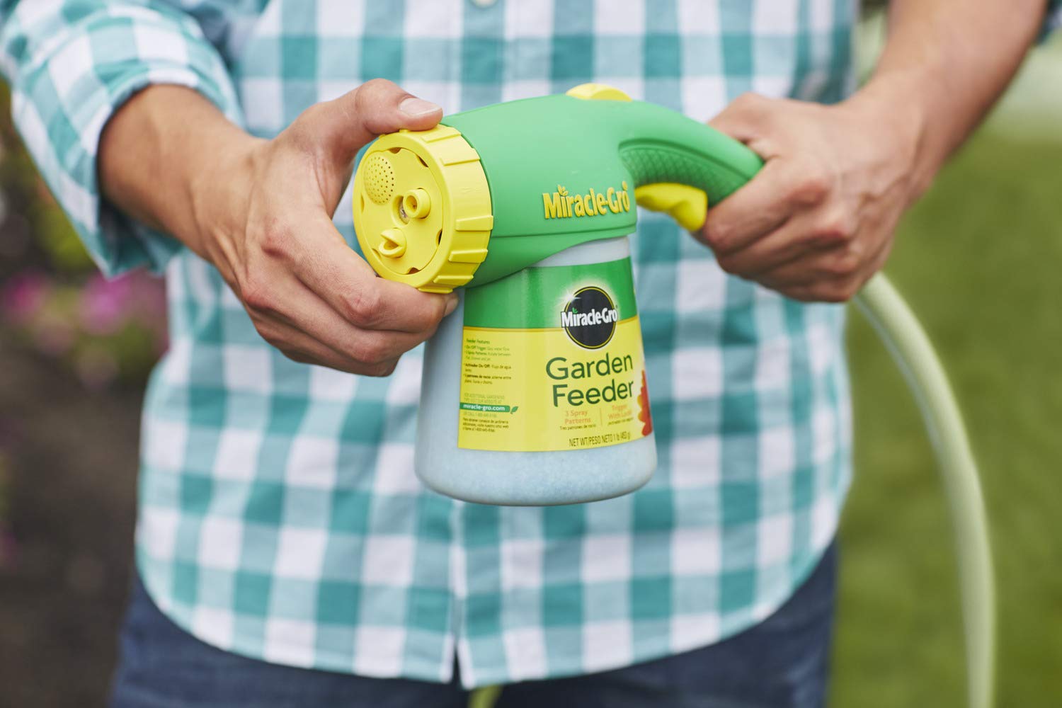 - Feeding your outdoor plants is a breeze with the Miracle-Gro Garden Feeder with easy hose hookup