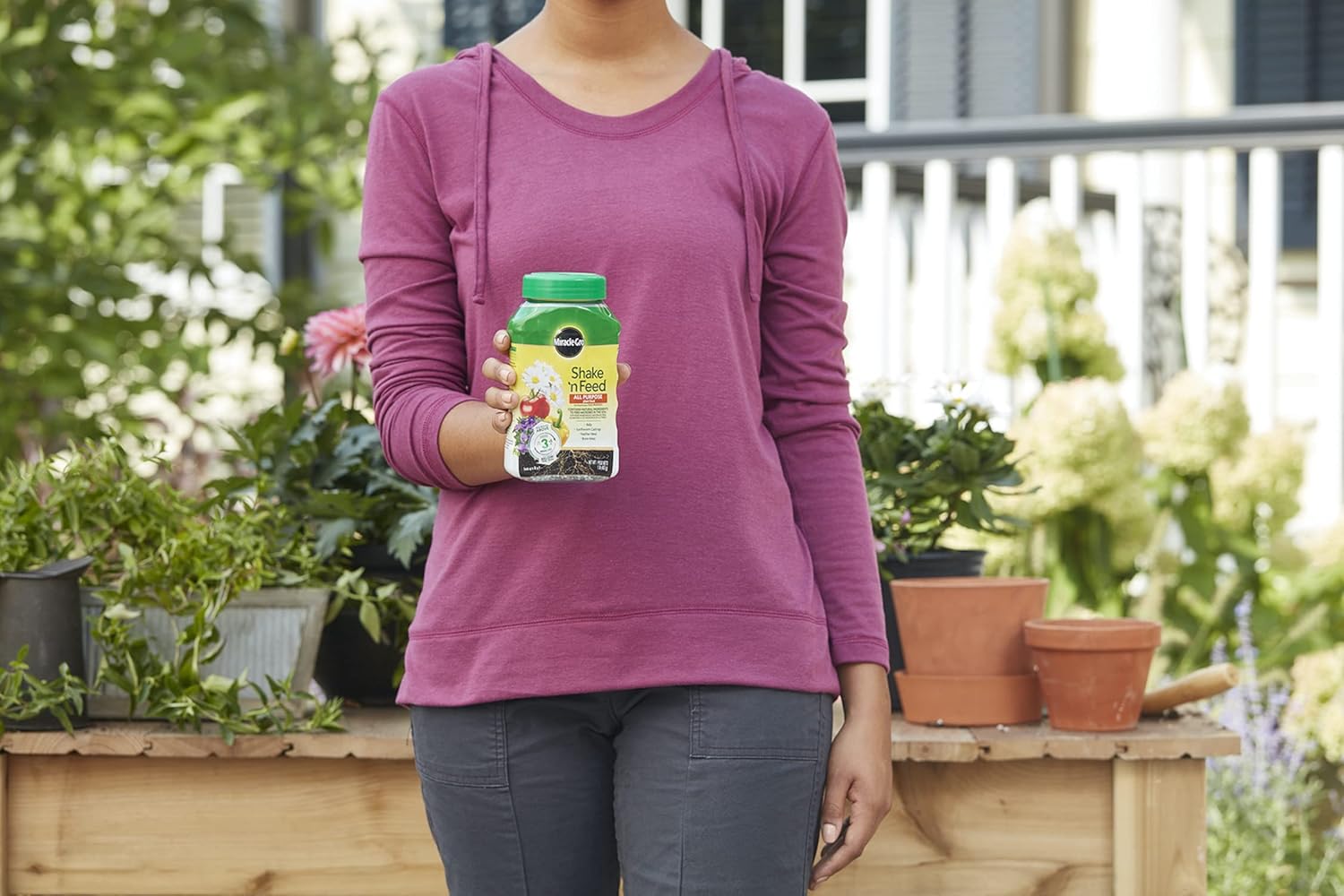 - Miracle-Gro Shake 'N Feed All Purpose Plant Food feeds plants for up to 3 months, and nourishes above and below the soil