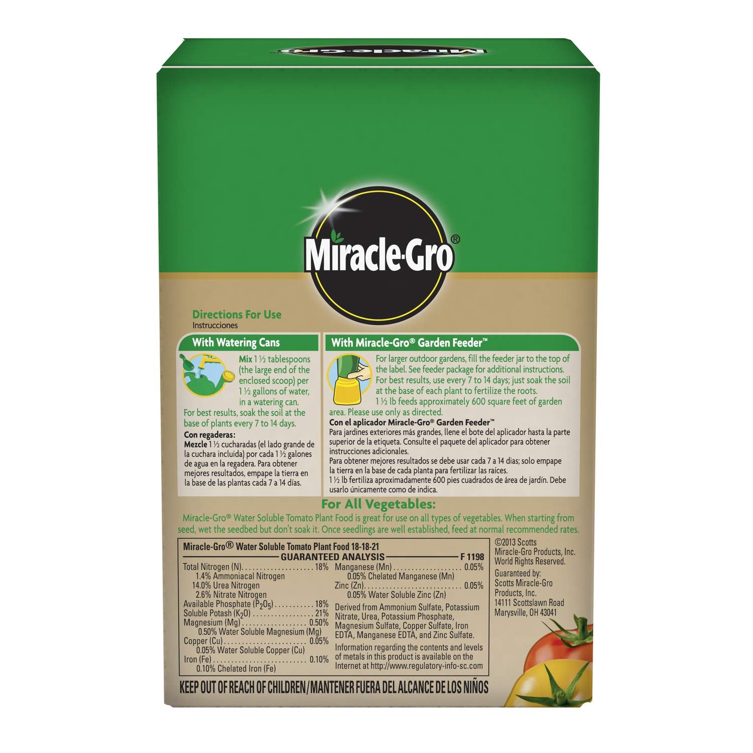 Miracle-Gro Water Soluble Tomato Plant Food instantly feeds to grow bigger, more bountiful tomatoes and vegetables compared to unfed plants. Use our plant food with the Miracle-Gro Garden Feeder or any watering can, and feed every 1-2 weeks. Safe for all plants when used as directed. Miracle-Gro Water Soluble Tomato Plant Food will help you get better results.