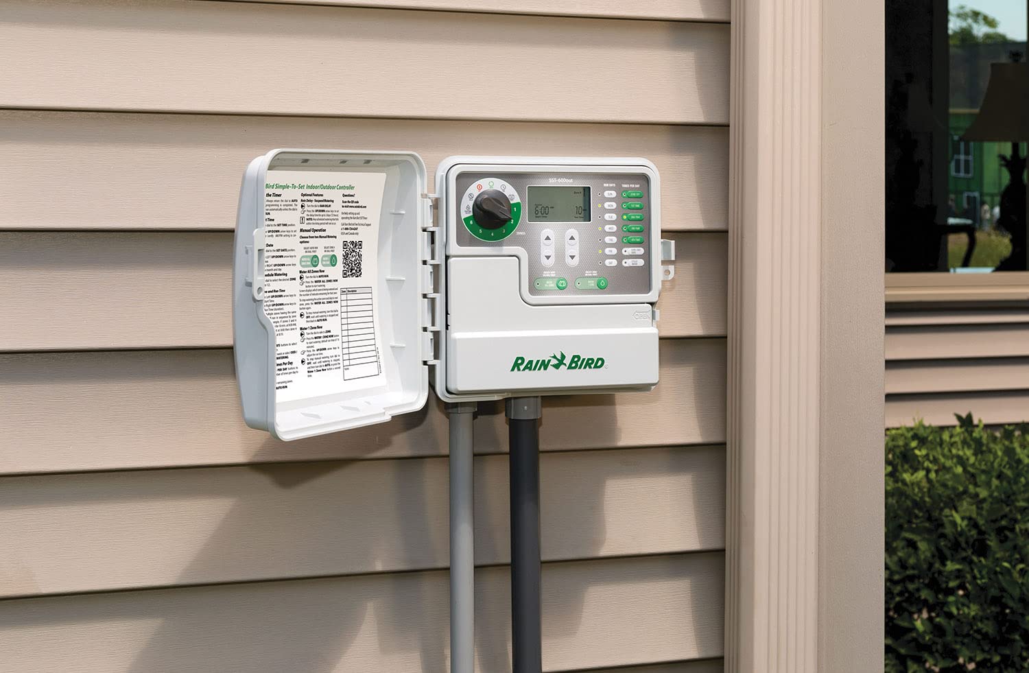 Rain Bird SST1200OUT Simple-To-Set Indoor/Outdoor Sprinkler/Irrigation Timer/Controller, 12-Zone/Station. Rain Bird introduces the new "SST1200OUT" Timer packed with enhanced features and programming options (this new & improved model replaces the Obsolete SST1200O). This indoor-outdoor timer is so easy to use you won’t need the instructions!! Intuitive, simple zone-by-zone settings allow different watering schedules specific to each area of your yard, providing greener results with less water. Controls up to 12-valves with watering times from 0-240 minutes per zone. Simply turn the dial to each zone to quickly and easily set: custom days of the week, odd or even days, or a cycle number of days independent of all other zones. Programs up to four custom watering times per day to correctly water slopes and clay soils in short intervals allowing water to soak in and avoid runoff. Quickly review all settings with the LCD screen and easy to read LED indicator lights. Additional Features: "Seasonal Adjust" allows increase in watering time up to +100% in hot/dry months or reduce in cool/rainy periods to as little as -90%. "Rain Delay" suspends watering for up to 72-hours; resetting automatically once delay ends. "Water 1 Zone Now" button waters a single zone for up to 180 minutes. "Water All Zones Now" button waters all zones for duration of first programmed time. Superior built-in surge protection guards against damage from lightning strikes or power surges. All timer settings are stored indefinitely in memory; no need to re-program in case of power outage. Automatic trouble shooting of valves and wiring: if a short is detected timer suspends watering to the zone and displays a warning message with the affected valve number. Supports a master valve, pump start relay, and a rain sensor. Weather-resistant cabinet and sealed case ensure protection from moisture, insects and grime. Compatible with most 24 VAC irrigation valves. Includes: weather-resistant cabinet, removable 6’ power cord, built-in transformer and installation guide. Electrical Specs: Input - 120 VAC/ 0.17 AMP/ 60Hz. Output - 25.5 VAC/ 0.65 AMP/ 60Hz. UL, and cUL certified. Rain Bird “The Intelligent Use of Water”