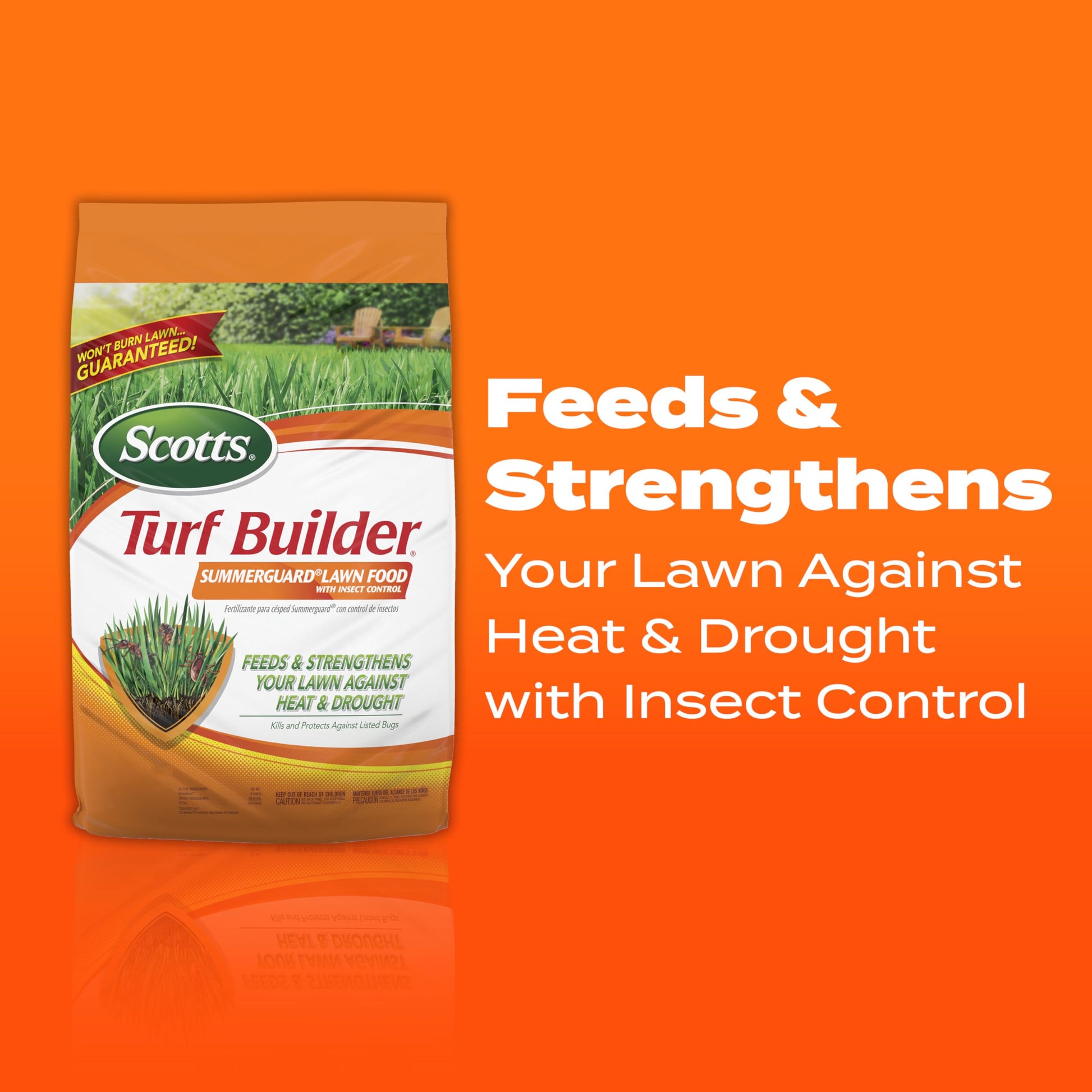 - Scotts Turf Builder SummerGuard Lawn Food with Insect Control kills and protects against listed bugs, and feeds and strengthens your lawn against heat and drought
